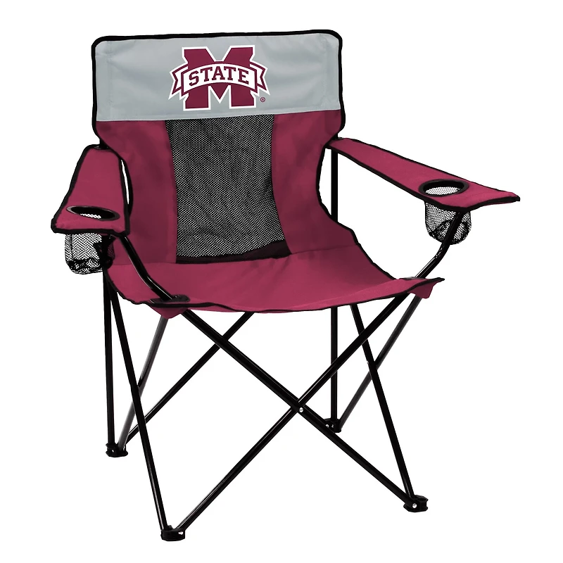 Take in some exciting NCAA action while you kick back and relax in the Logo™ Mississippi State University Elite Chair. This chair features a collapsible powder-coat steel frame that folds flat for easy storage and transport, while the large MS State logo screen printed at the top shows your fan dedication. Made of durable polyester with a breathable mesh back. 17.5"W x 22"D seating area. Holds up to 250 lb. For a large selection of Bulldogs accessories, browse the Fan Shop at Academy.com.