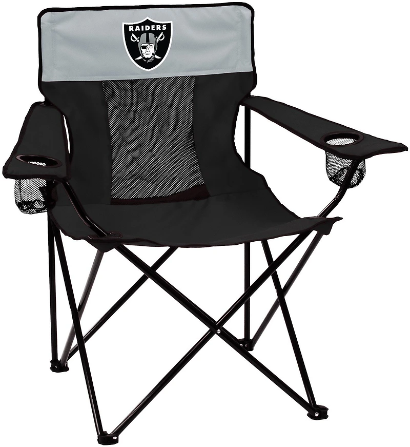 Cheer on the Raiders while you relax in the Logo Oakland Raiders Elite Chair, which features adjustable armrests and a mesh back to keep you comfortable on game day. The 2 cup holders give you convenient access to drinks or small belongings, and the Oakland Raiders logo on the front and back helps you show your team spirit from the sidelines. Shop for more team merchandise at Academy.com.