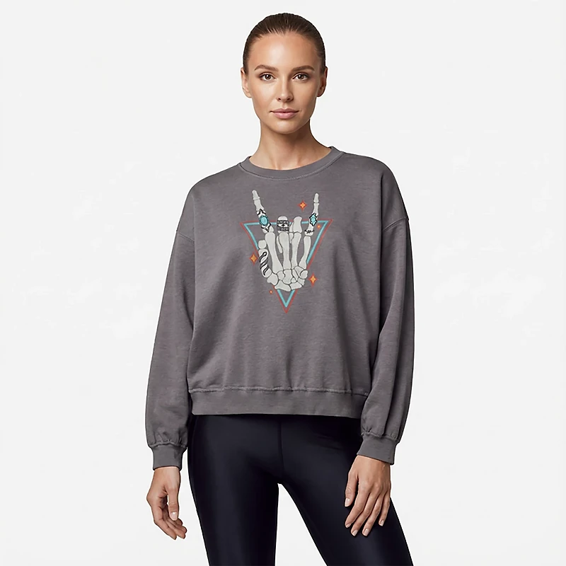 - LOL LADIES FLEECE CREW WITH SKELETON HAND FRONT CHEST GRAPHIC