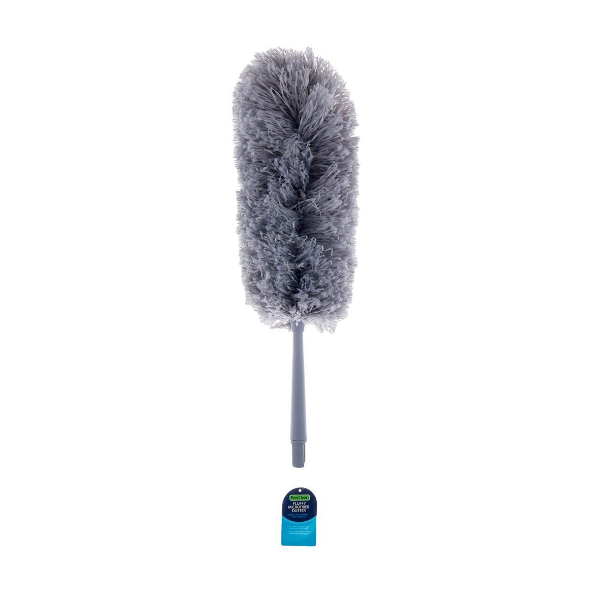 Microfiber threads grab dust with a flexible head that bends for hard to reach areas, including ceiling fans. The handle has a threaded end to attach to a pole.
