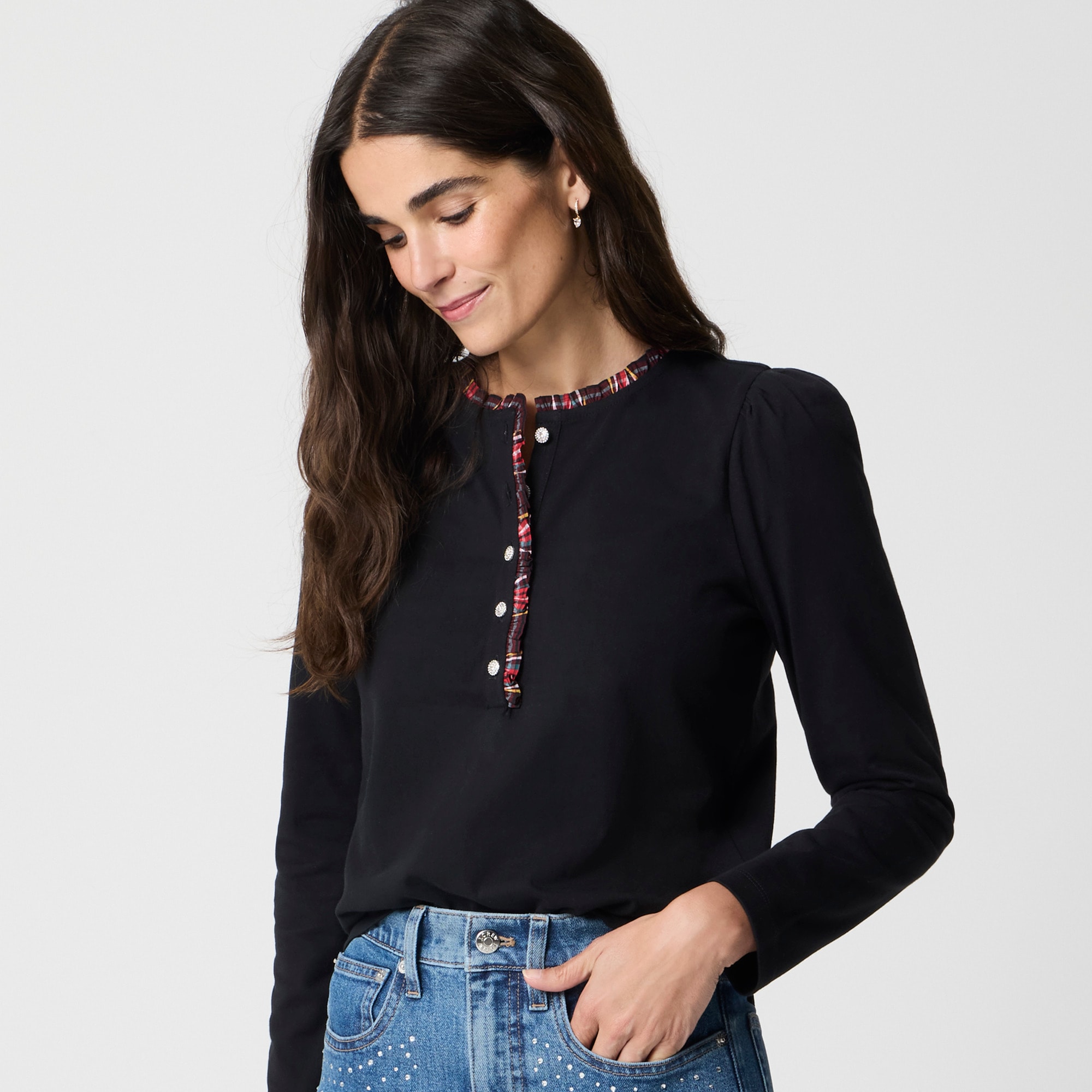 Long-sleeve tartan and jewels henley for women - Find the best selection available in-stores and online at J.Crew Factory.