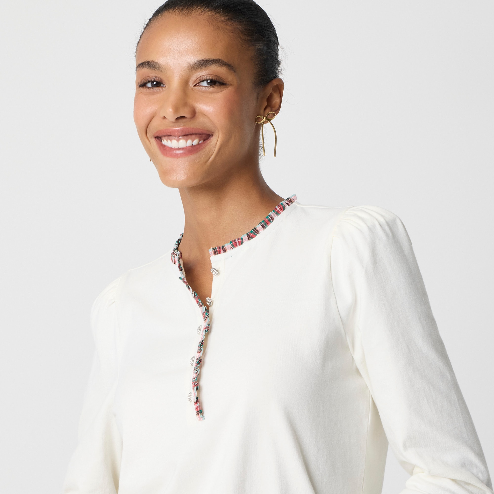 Long-sleeve tartan and jewels henley for women - Find the best selection available in-stores and online at J.Crew Factory.