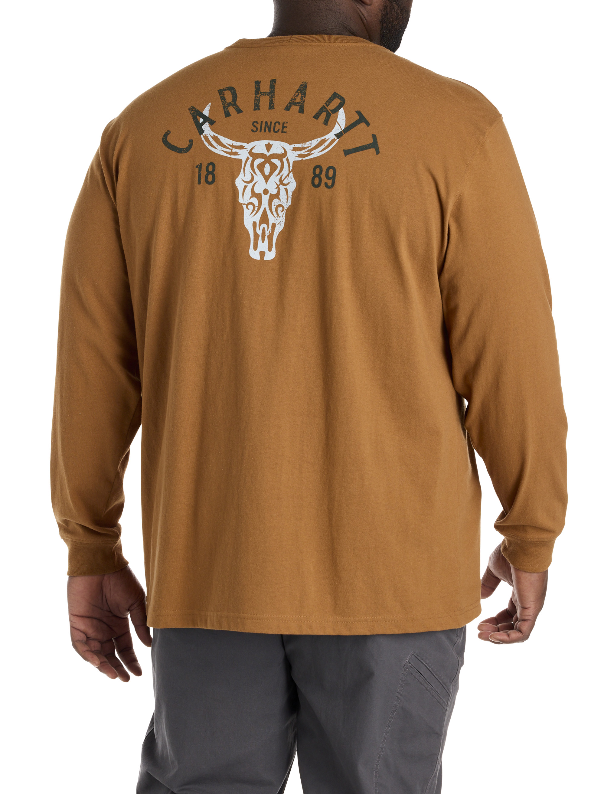 For more than a century, Carhartt has produced rugged workwear to help people tackle the toughest jobs. This long-sleeve T-shirt is a nod to the legacy. Soft yet durable, it's made of soft 100% cotton that allows for the freedom to move without restriction. The side-seam construction minimizes twisting for long wear. The iconic logo is proudly displayed at the left chest pocket with a "Longhorn" graphic on back. Pair it with your favorite jeans for a complete look.