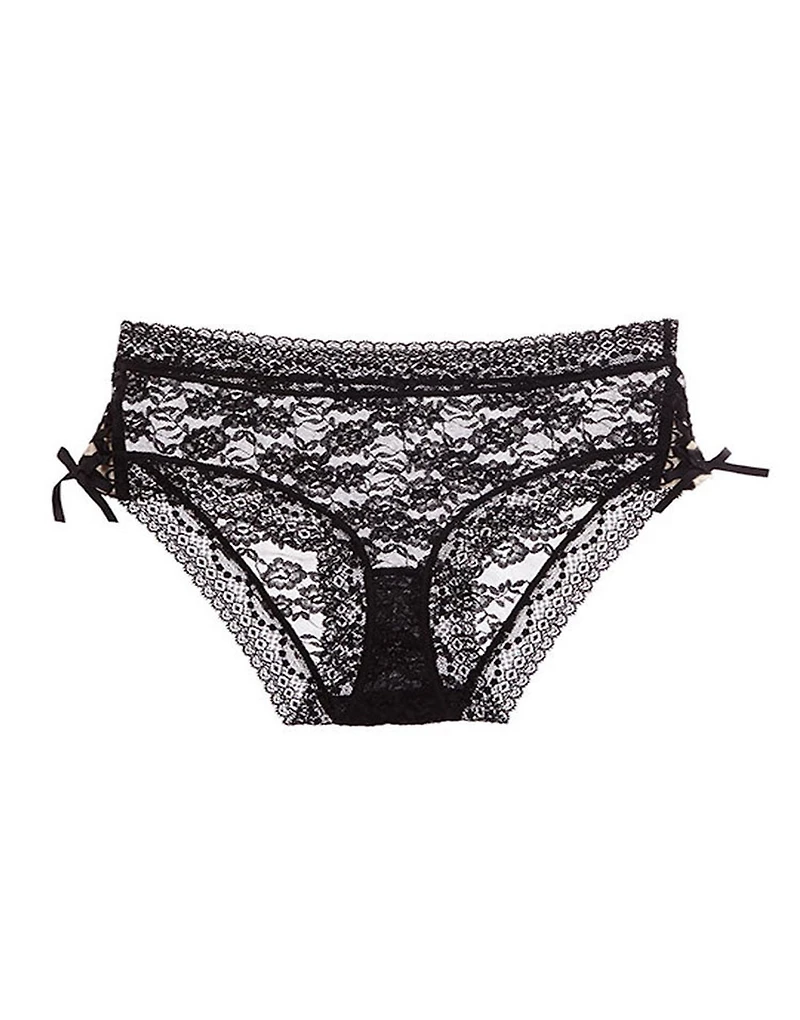 The Lorainne Hipster Black lace hipster is a bold and alluring staple for your top drawer. Effortlessly stylish, this hipster panty offers a flattering silhouette. (Available in sizes XS-XL.)
