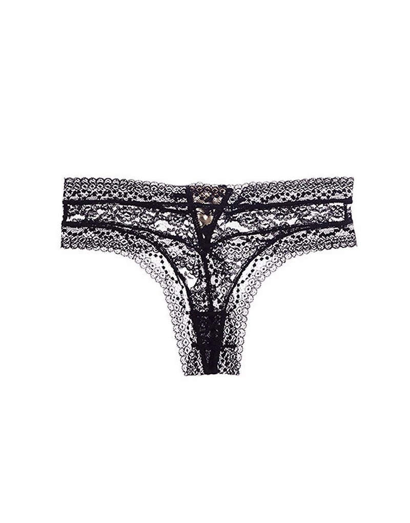 The Lorainne Thong Black lace thong is a bold and alluring must-have. Effortlessly elegant, this style features Style: Thong Panty for a striking silhouette. (Available in sizes XS-XL.)