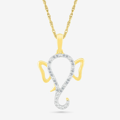 Lord Ganesha Womens Diamond Accent Natural White Diamond 14K White Gold 18 Inch Pendant Necklace
