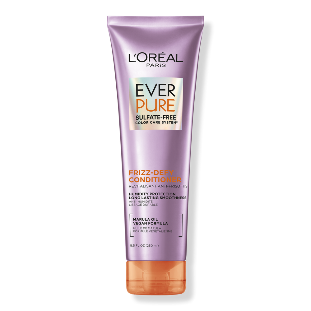 EVERPURE FRIZZ-DEFY CONDITIONER NF 8.5OZ. Benefits: L'Oreal EverPure Sulfate Free Frizz-Defy Conditioner provides humidity and frizz resistance up to 24 hours plus color protection.. EverPure premium hair care system with smoothing shampoo and conditioner is formulated for natural, mature, or color treated, dry hair, damaged hair, dehydrated hair, curly hair, and frizzy hair.. For best results, use EverPure Frizz-Defy Shampoo and Conditioner System daily or on wash day. For more moisture and frizz control, mist Moisture 21-in-1 Spray throughout wet hair. Leave in and comb through prior to styling.. Frizz-Defy shampoo and conditioner for natural, mature, or color treated, frizzy hair infused with marula oil and a fresh floral scent with notes of magnolia, gently smooths and cleanses for humidity and frizz control.. L'Oreal's Purest Respect For Your Hair - Formulated without sulfates, parabens, synthetic fragrance, added phthalates, gluten ingredients, DMDM Hydantoin, silicones, and dyes. Always vegan, color caring, and powered by science.. : :