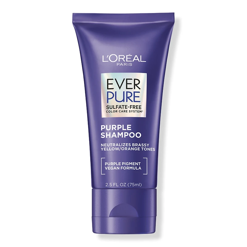 EVERPURE PURPLE TONING SHAMPOO 6.8OZ. Benefits: Color protection plus neutralizes brassy yellow and orange tones. Premium quality formula for color treated, blonde, bleached, highlighted brown, sliver hair. Sulfate free, paraben free, no harsh salts, vegan formula. With Hibiscus and Purple Dye. Formulated Without: Parabens, Sulfates. :
