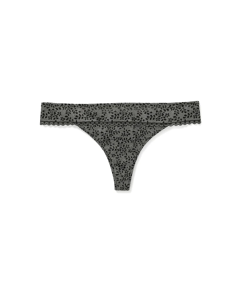 The Lori Thong Dark Blue 2 lace thong is an irresistible romantic-basics essential. Effortlessly comfortable, it features a pull-on design, lightweight fabric, regular rise, Full waistband elastic, and Opaque material. (Available in sizes XS-XL.)