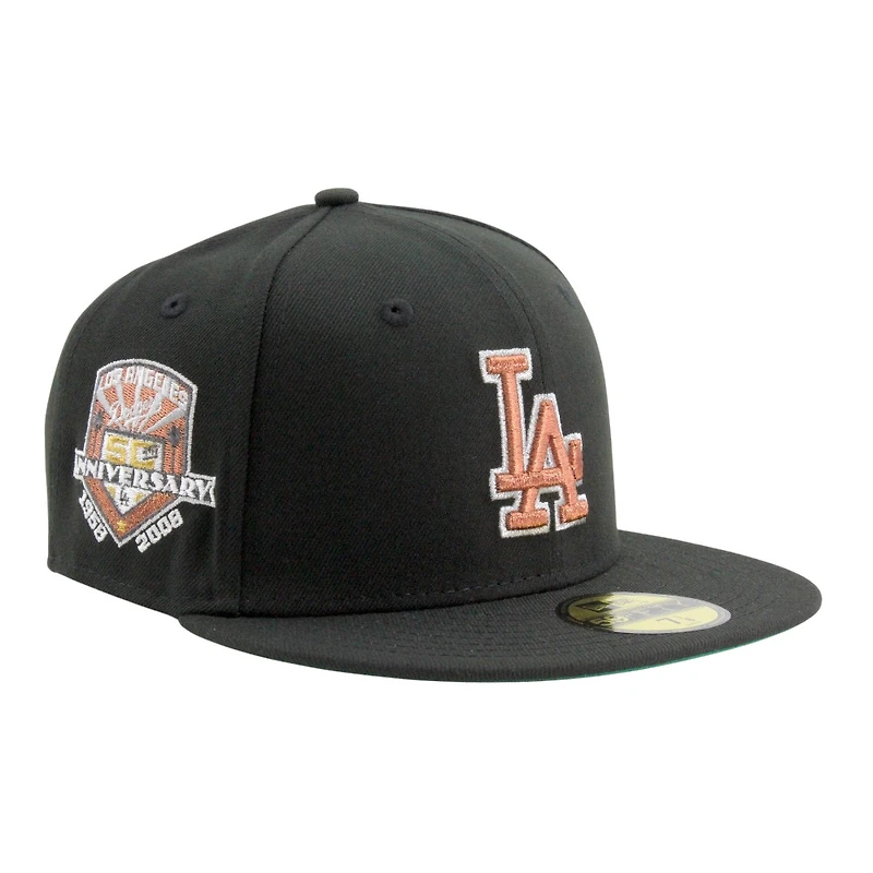 Los Angeles Dodgers Black with Copper LA Logo 50th Anniversary Patch Green UV New Era 59FIFTY Fitted Hat