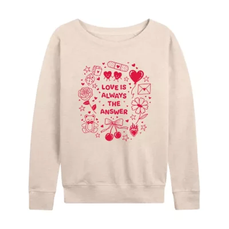 Love Always Answer Womens Boat Neck Long Sleeve Classic Fit Graphic T-ShirtLove Always Answer Womens Boat Neck Long Sleeve Classic Fit Graphic T-Shirt