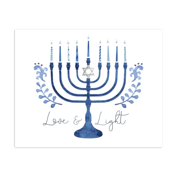Our Love & Light Menorah Canvas Art Print is the perfect charming element to add to your Hanukkah decor! This watercolor painting is sure to make any wall look ready for the holidays. Art measures 20L x 1.3W x 16H in. Giclee printed on archival-grade, poly-cotton canvas Canvas stretched over solid pine wood Features a menorah as subject Accented with David's star and the phrase "Love & Light" Hues of white, blue, and gray Weight: 2.5 lbs. Hangs from back-mounted hardware Care: Dust with a soft, dry cloth. Avoid exposure to heat, direct sunlight, and moisture. This item is available at Kirklands.com only, not available in stores. Please note: this item cannot be shipped to APO/FPO addresses.