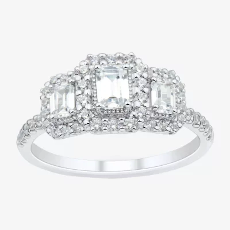 Love Lives Forever (H-I / Si1-Si2) Womens 1 CT. T.W. Lab Grown White Diamond 10K Gold Side Stone 3-Stone Engagement Ring