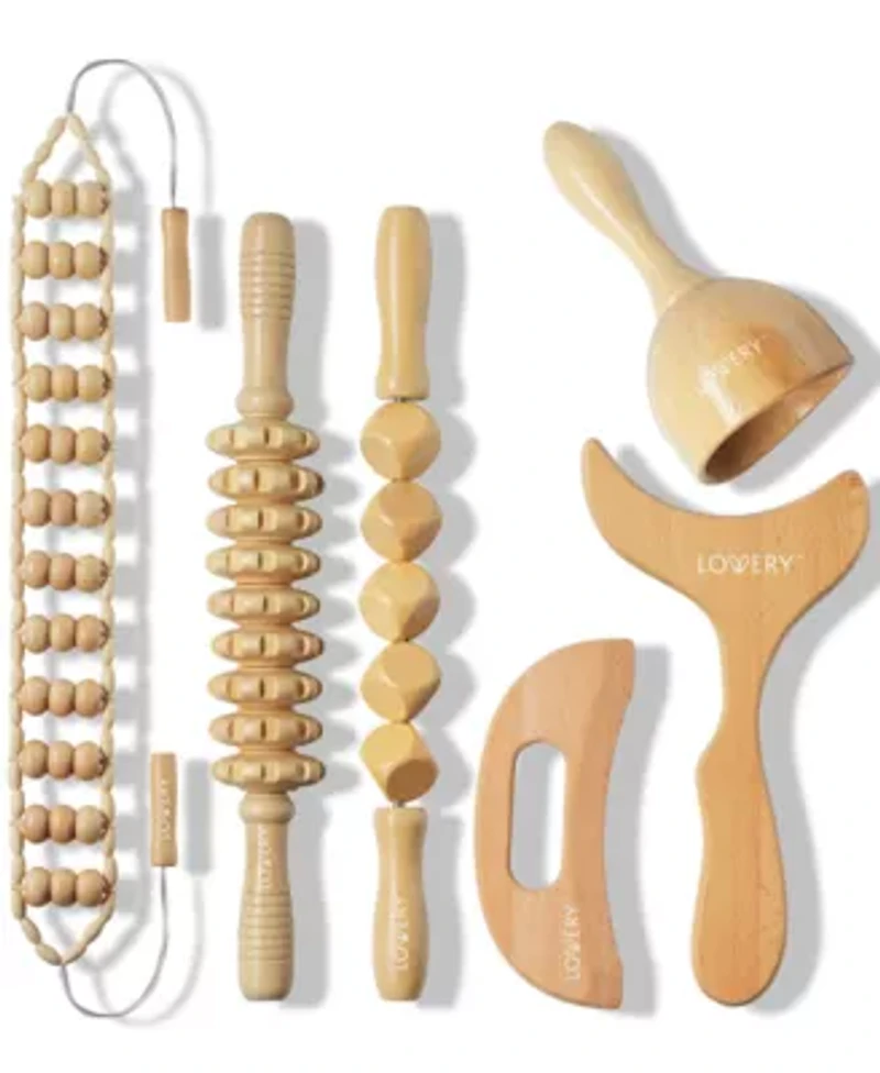 Lovery 6-Piece Wooden Massage Tool Kit - Natural Wood Therapy Set for Body Sculpting & Relaxation