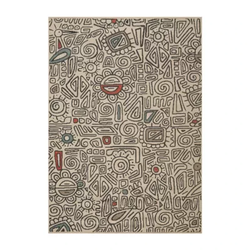 Transform your space with this durable indoor/outdoor area rug. The abstract geometric pattern adds playful charm, making it a stunning foundation for modern, eclectic, or contemporary interiors or exteriors. Expertly power-loomed in Egypt, this rug is crafted from premium polypropylene fibers, offering a soft yet durable texture that stands up to everyday wear and outdoor elements. Designed for high-traffic areas, this stain, moisture, and fade-resistant, easy-to-clean rug maintains long-lasting beauty, ensuring your home stays stylish with minimal maintenance. Perfect for anyone seeking a durable, elegant, and versatile rug for your home, apartment, or dorm.