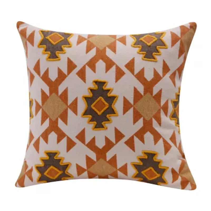 Add a vibrant touch to your home, apartment, or dorm with this 20" x 20" handmade throw pillow, including a polyfill insert for plush comfort. Crafted from soft cotton in a striking orange and beige geometric pattern, this Southwestern and boho pillow showcases eye-catching printed and embroidered details. Ideal for layering on sofas, accent chairs, and beds, this decorative pillow enhances any living space with artistic flair and warmth.