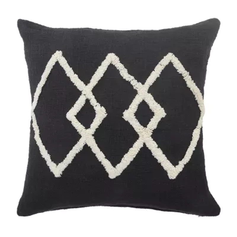 Update your decor with this 20" x 20" handmade throw pillow. The classic black and white diamond pattern with shag texture makes a modern statement while blending seamlessly with boho, farmhouse, or contemporary styles. Crafted from cotton, it's soft, durable, and easy to maintain. A hidden zipper closure offers a polished look and simple cover removal, while the polyester insert provides lasting comfort. Perfect for sofas, beds, or accent chairs, this pillow is a versatile way to refresh any room. Generous Size: 20" x 20" for an eye-catching accent. Durable Blend: Made of a cotton/polyester blend for softness and strength. Modern Design: Black-and-white geometric pattern adds bold, graphic style. Hidden Zipper: Keeps the look sleek and allows easy cover removal. Insert Included: Plush polyester insert for immediate use and comfort. Versatile Placement: Ideal for living rooms, bedrooms, or entryway benches.