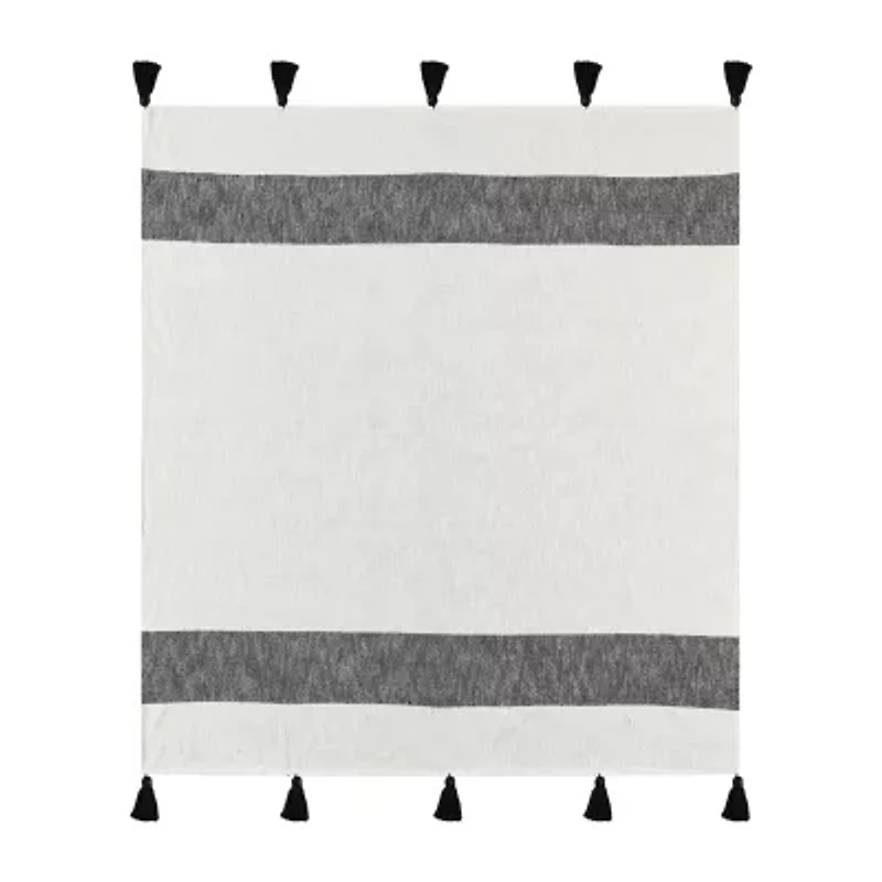 Come get cozy with this decadent cotton throw blanket. Featuring two classic, bold stripes in a heathered wash for a comfy, broken-in feel; with self-binding edges for durability, and tassels for a little extra flair. This blanket is crafted in India from all-natural, organic cotton, which provides ultimate breathability and comfort that you will enjoy year-round.