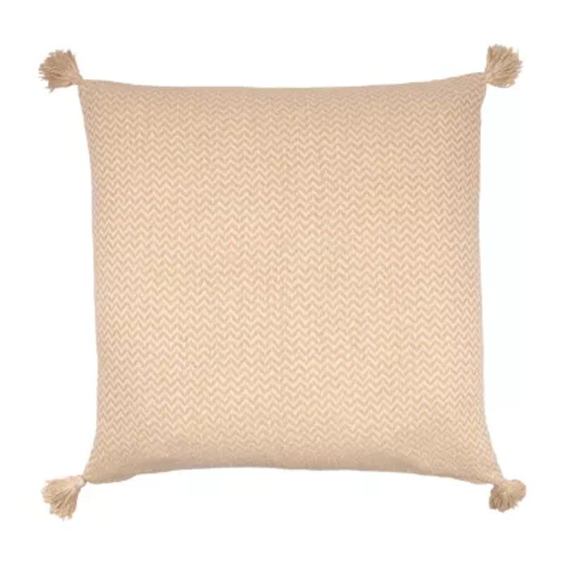 Bring cozy farmhouse charm to your home, apartment, or dorm with this 30" x 30" transitional floor pillow, hand-woven from soft cotton in a stylish beige and ivory chevron stripe with corner tassels. Featuring a reversible design with matching front and back, this pillow includes a plush polyfill insert for superior comfort. Perfect for layering on sofas, accent chairs, and beds, this versatile throw pillow enhances any living space with its casual elegance.