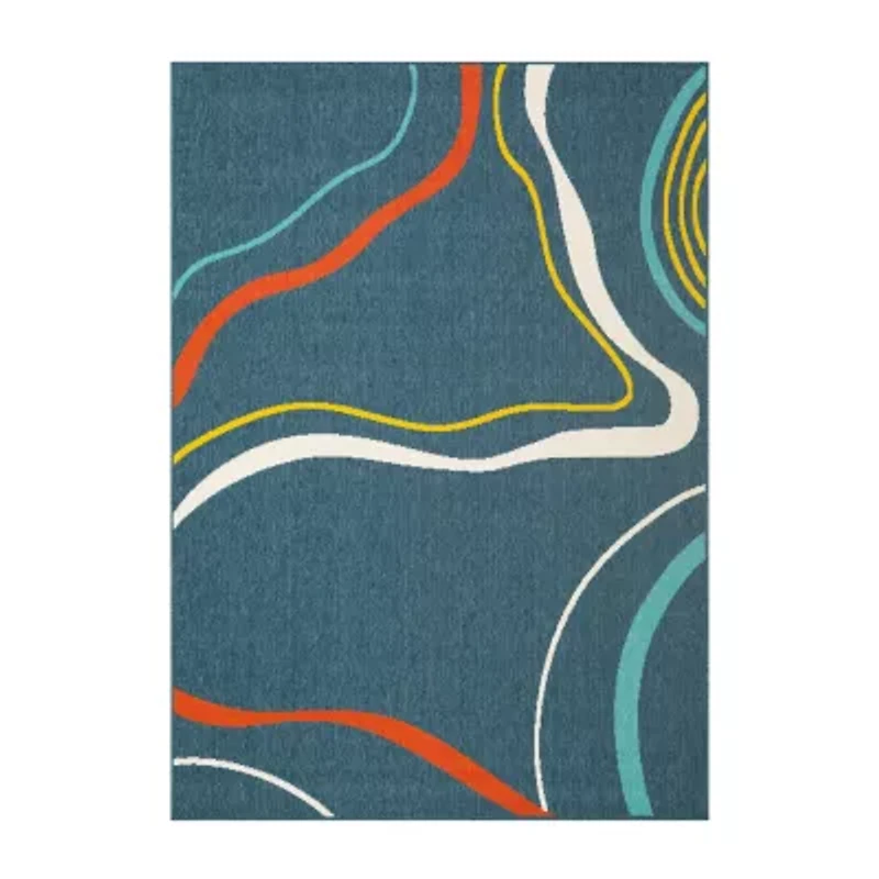 Transform your space with this durable indoor/outdoor area rug. The abstract pattern adds playful charm, making it a stunning foundation for modern, tropical, or contemporary interiors or exteriors. Expertly power-loomed in Egypt, this rug is crafted from premium polypropylene fibers, offering a soft yet durable texture that stands up to everyday wear and outdoor elements. Designed for high-traffic areas, this stain, moisture, and fade-resistant, easy-to-clean rug maintains long-lasting beauty, ensuring your home stays stylish with minimal maintenance. Perfect for anyone seeking a durable, elegant, and versatile rug for your home, apartment, or dorm.