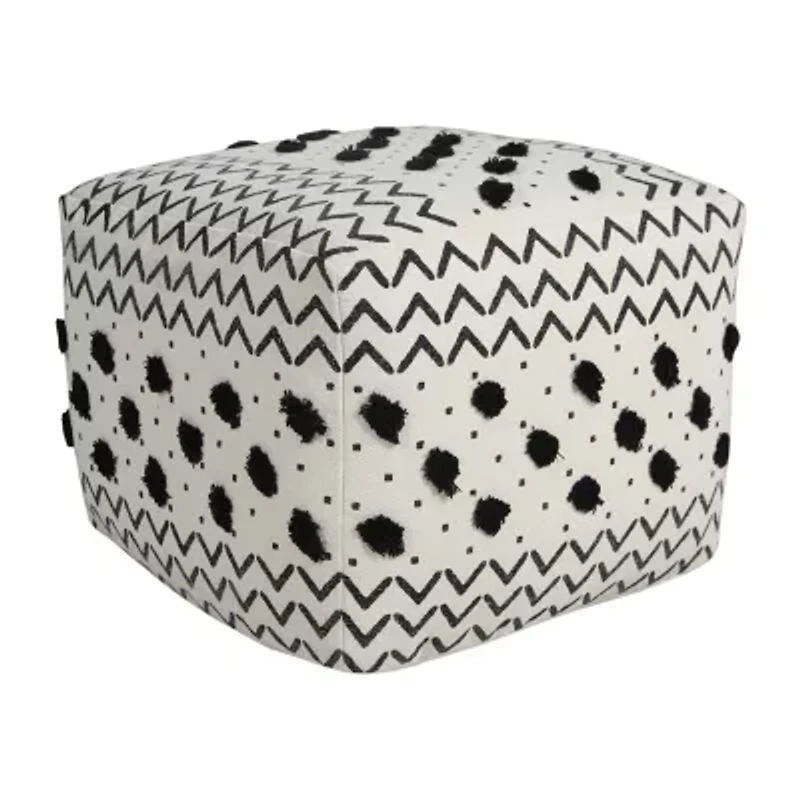 LR Home Verena 14" Handmade Cotton Pouf in Black/White in Chattanooga, TN