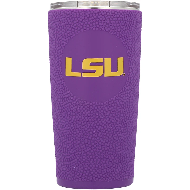 Sip your favorite game day beverage out of this LSU Tigers 20oz. Stainless Steel tumbler. It includes a removable silicone cover that features 3D football texture graphics, making it perfect for showing your fandom while also staying refreshed. The slider top offers a stress-free, no-mess way to enjoy your drink of choice while you cheer on the LSU Tigers.