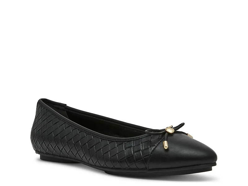 The Luci ballet flat from Anne Klein offers a sleek, woven silhouette with an almond cap toe that brings a subtle edge to your everyday wardrobe. This slip-on style transitions effortlessly from running errands to office meetings or evening plans, making it a versatile staple for city life. With its refined design and delicate bow detail, the Luci Ballet Flat blends modern polish with casual ease, perfect for those who value both style and comfort.