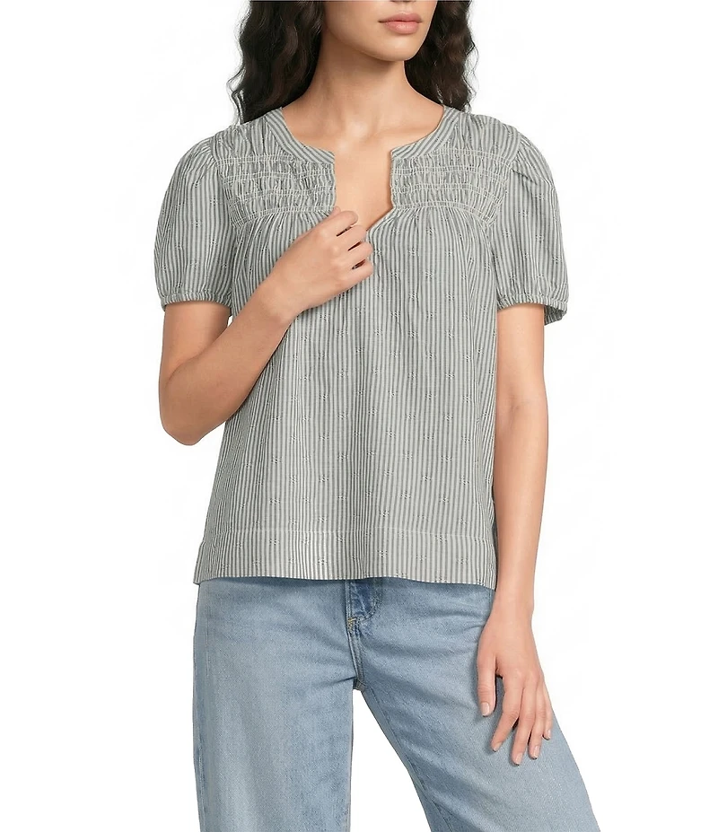 Lucky Brand Woven Striped Split Neck Short Sleeve Top in Chattanooga, TN