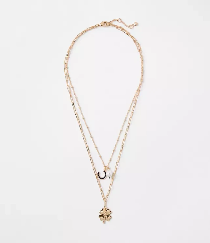 Styled with a metallic clover pendant - and a horseshoe pearlized bead cluster - this necklace set is filled with lucky charm. Clasp closures 19 1/2"and 23 long, with 2"extenders., Imported: Loft Lucky Clover Layered Necklace Set Fresh Pearl Women's by Loft Size Regular - One Size Fresh Pearl Women's Necklaces, Jewelry