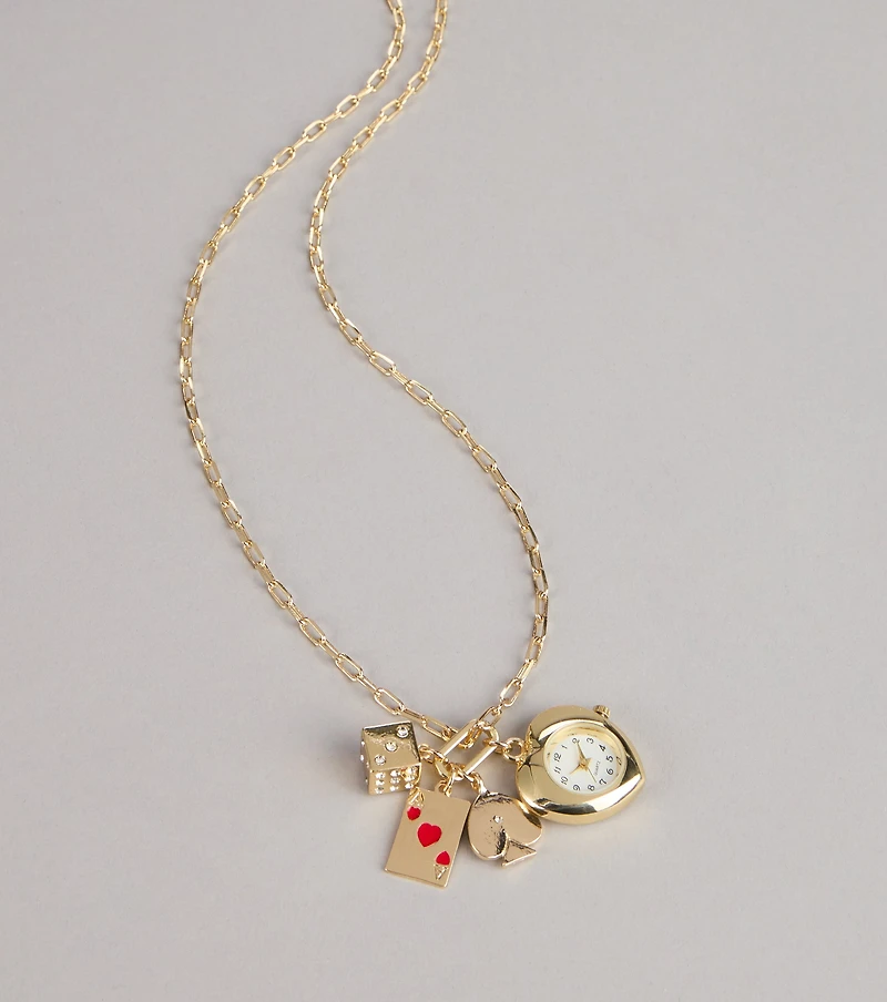 Lucky Timing Watch Charm Statement Necklace