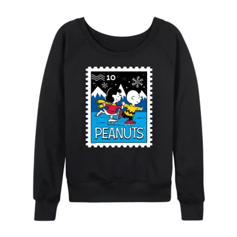 Lucy Charlie Winter Stamp Womens Boat Neck Long Sleeve Classic Fit Peanuts Graphic T-Shirt