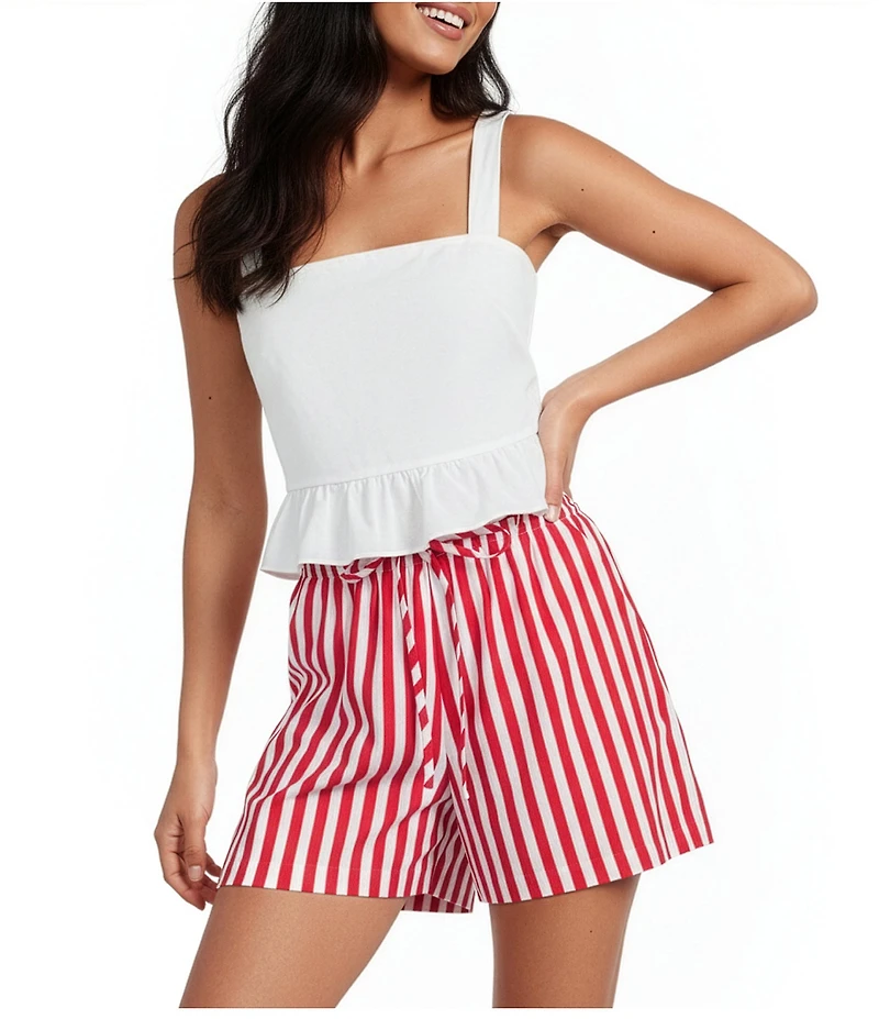 From Lucy Paris Petite, this top features: Square neckline Sleeveless Pull-over construction Peplum silhouette Approx. 11.25" length Cotton/linen Machine wash/tumble dry Imported.
