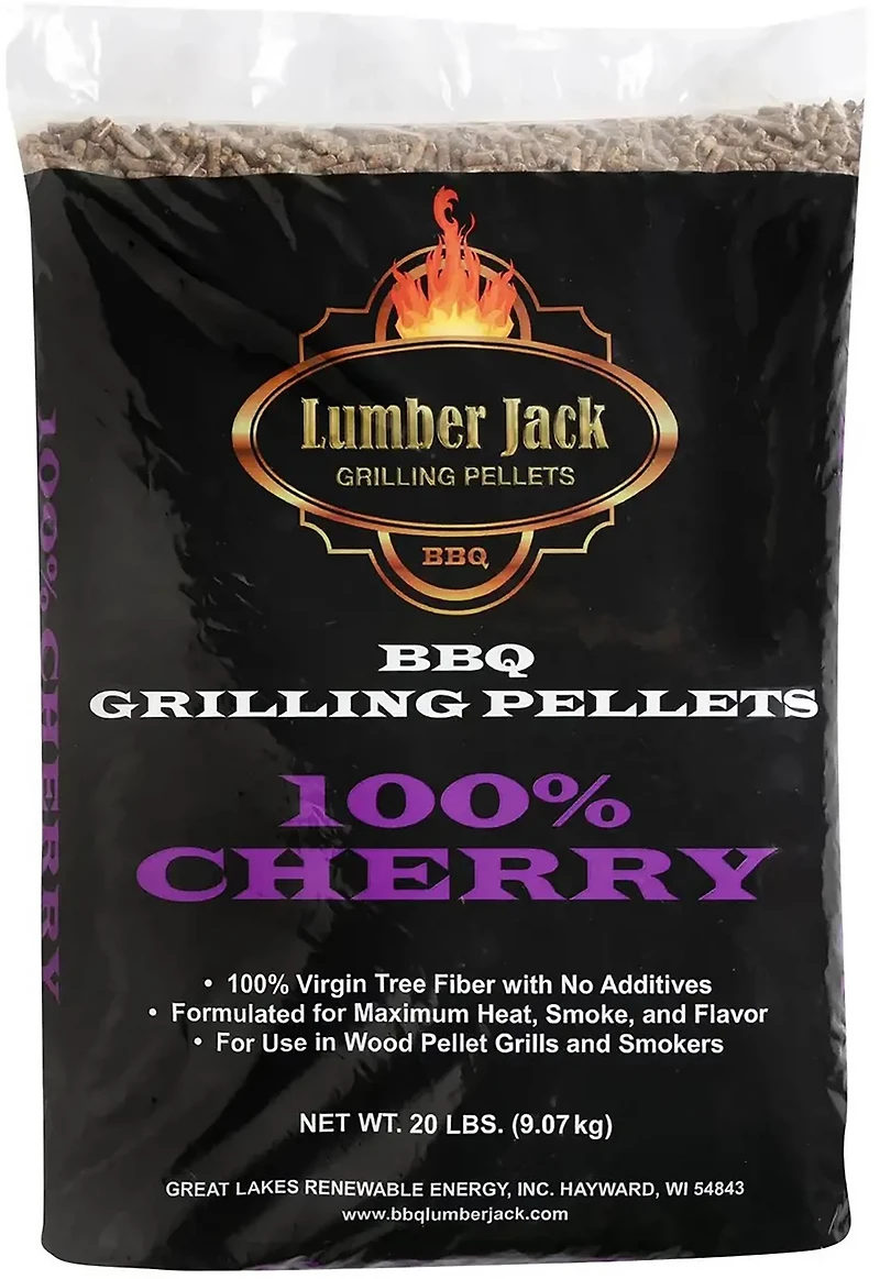 Grill meat, vegetables and more to perfection with the Lumber Jack BBQ 100% Cherry Pellets 20lb. The formula is designed to maximize heat and smoke, helping you achieve the delicious flavor you are looking for. Pure cherry wood lends a sweet and fruity aroma to complement your meal.