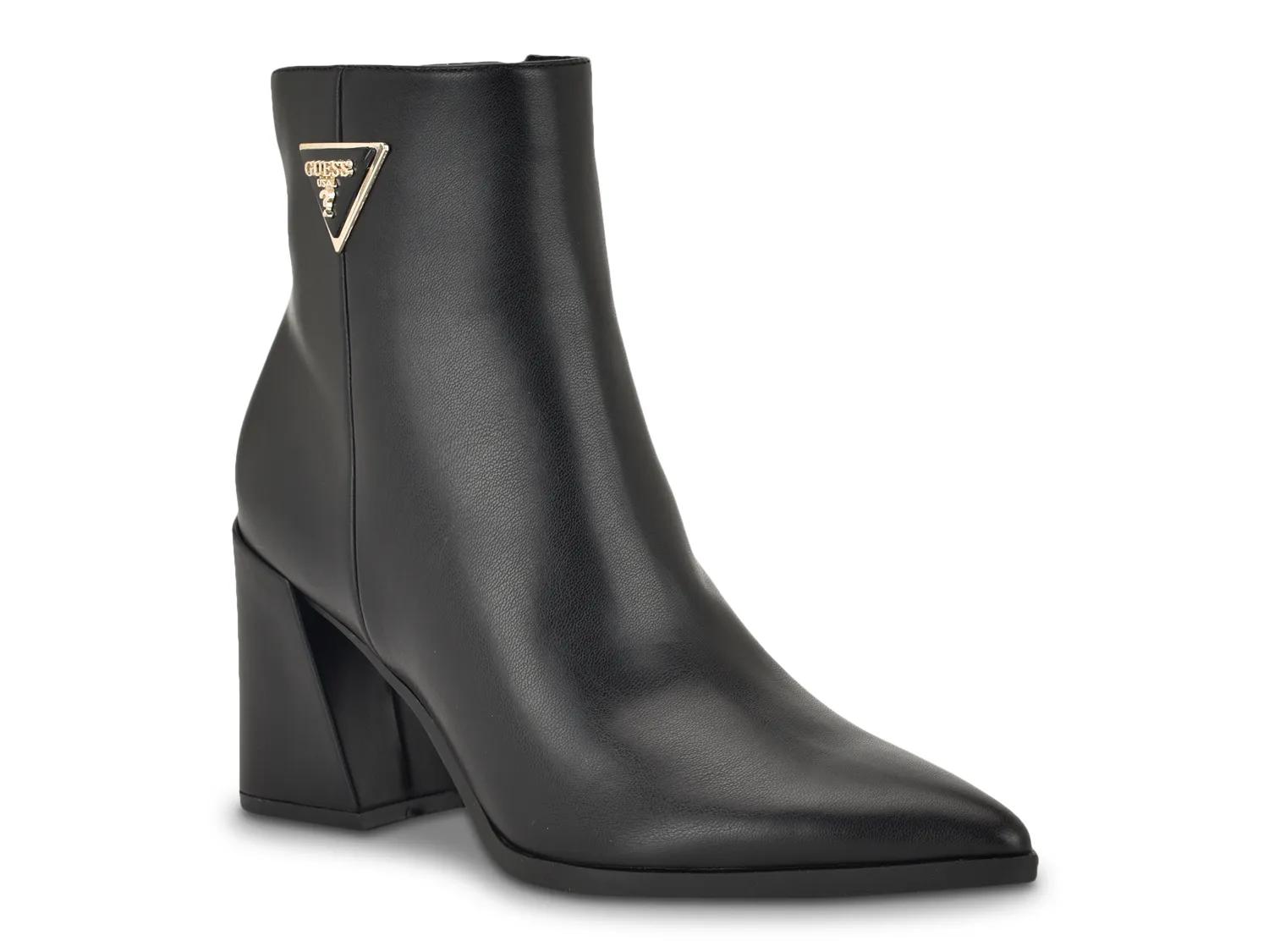 Prepare for chillier weather in style with the Lusera bootie from Guess. Featuring a sleek heel and pointed silhouette, this classic pair is sure to match well with favorite pieces for dressier or more everyday wear.