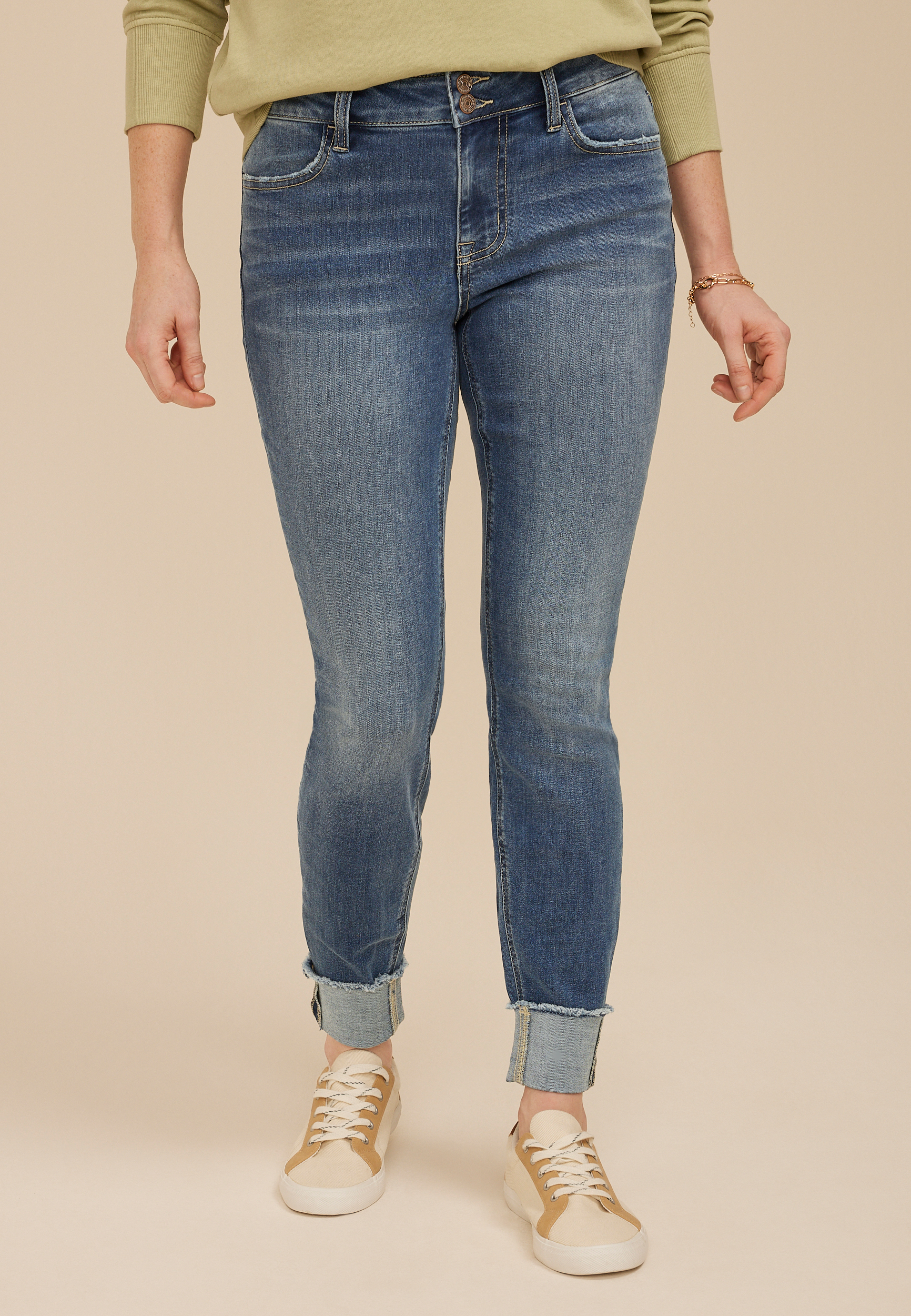 m jeans by maurices™ Cool Comfort Mid Rise Double Button Fray Cuff Ankle Jegging