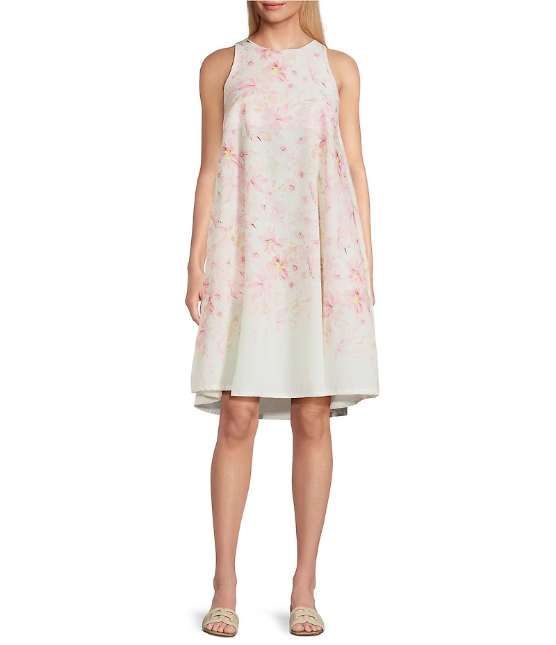 M Made In Italy Woven Gauze Peony Daisies Crew Neck Sleeveless A-Line Dress in Chattanooga, TN