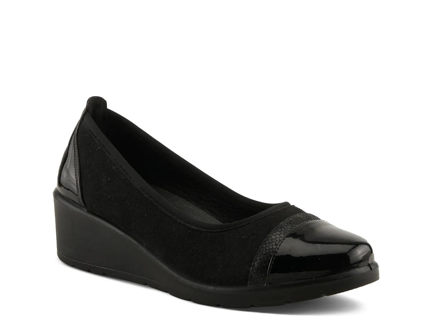 Step into sophisticated style and modern flair with the Flexus Macadi wedge pump. Contrast cap toe design with embossed trim accentuates the appeal of this slip-on. Lightweight sole with wedge heel offers easy wearability and elevated elegance.