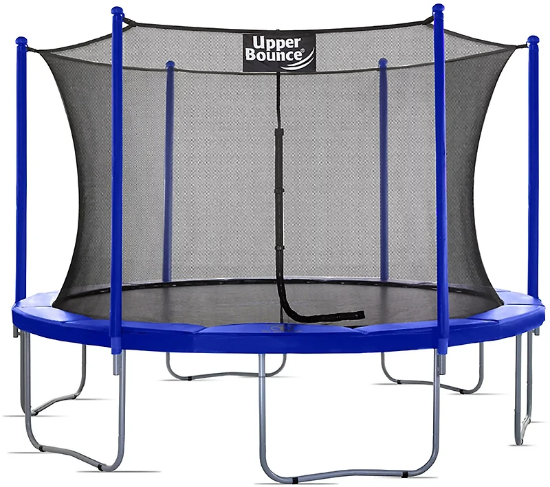 Enjoy worry-free backyard fun with the Machrus Upper Bounce 14 ft Round Trampoline with Enclosure. The galvanized steel frame supports up to 330 pounds for fun the whole family can enjoy, and the polypropylene jumping mat is durable and weather-resistant for years of bouncing. The thick covering protects your feet from touching the springs and getting injured, and the foam-padded poles and no-gap design add extra safety and protection.