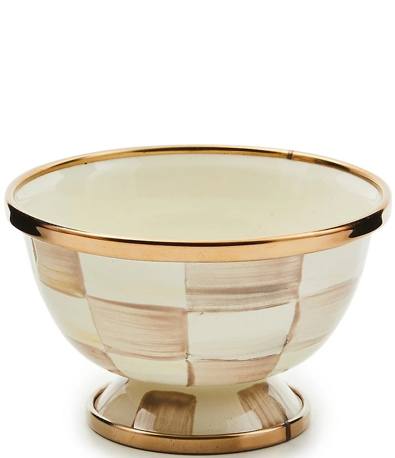 From MacKenzie-Childs, this sugar bowl features: Dainty only in size, our Check Little Sugar Bowl is a petite companion to our Little Creamer (sold separately)  Made of heavy-gauge, hand-glazed steel underbody with hand-painted Checks, rimmed in bronzed stainless steel Brass and glass accents Approx. 3.25" dia., 2" tall, 4 oz. capacity Pieces may vary due to the handmade nature of each product Dishwasher safe; For best results, hand-wash with mild soap and dry immediately Do not microwave Use caution with hot liquids MacKenzie-Childs enamelware exceeds both federal food safety regulations and California's Proposition 65, the strictest environmental safety standards in the U.S. Handle enamelware with care and discontinue use for food service if it becomes chipped, cracked, or broken Imported.