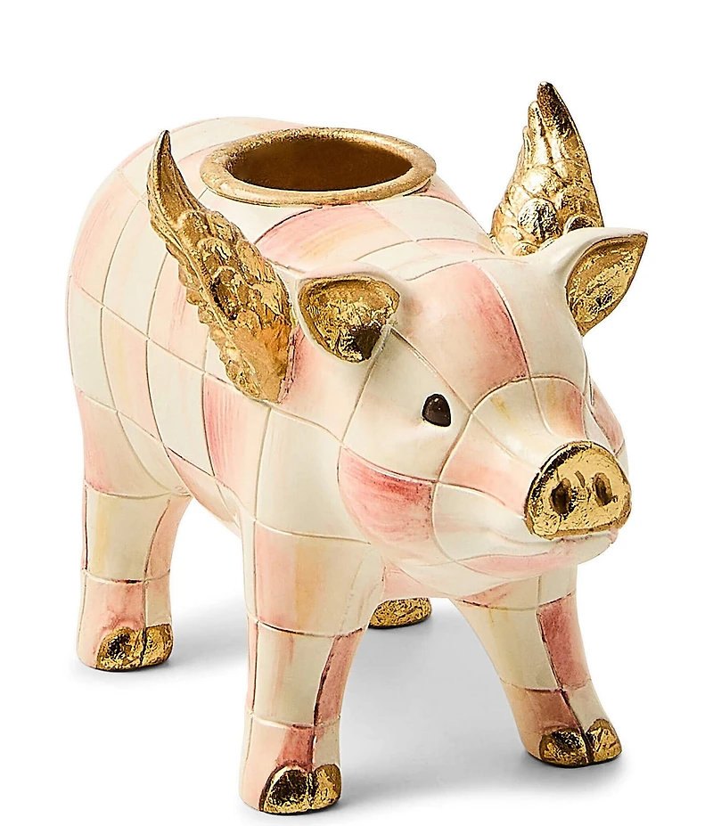 MacKenzie-Childs Check Flying Pig Candle Holder