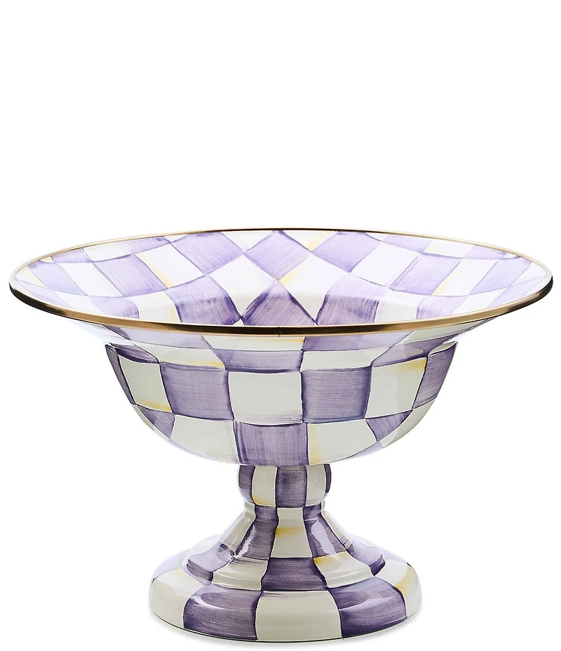 From MacKenzie-Childs, this footed compote features: An indispensable party serving dish, the Check Compote is decorated with with hand-painted checks in a range of hues It has a steel underbody and bronzed stainless-steel rim Small approx. 7.5" dia., 5" tall, 10 oz. capacity Large approx. 12" dia., 7.5" tall, 5 cup capacity Pieces may vary due to the handmade nature of each product Wipe clean with a soft, damp cloth. If needed, hand-wash with mild soap and dry immediately Our enamelware exceeds both federal food safety regulations and California's Proposition 65, the strictest environmental safety standards in the U.S. Handle enamelware with care and discontinue use for food service if it becomes chipped, cracked, or broken Each size sold separately Imported.