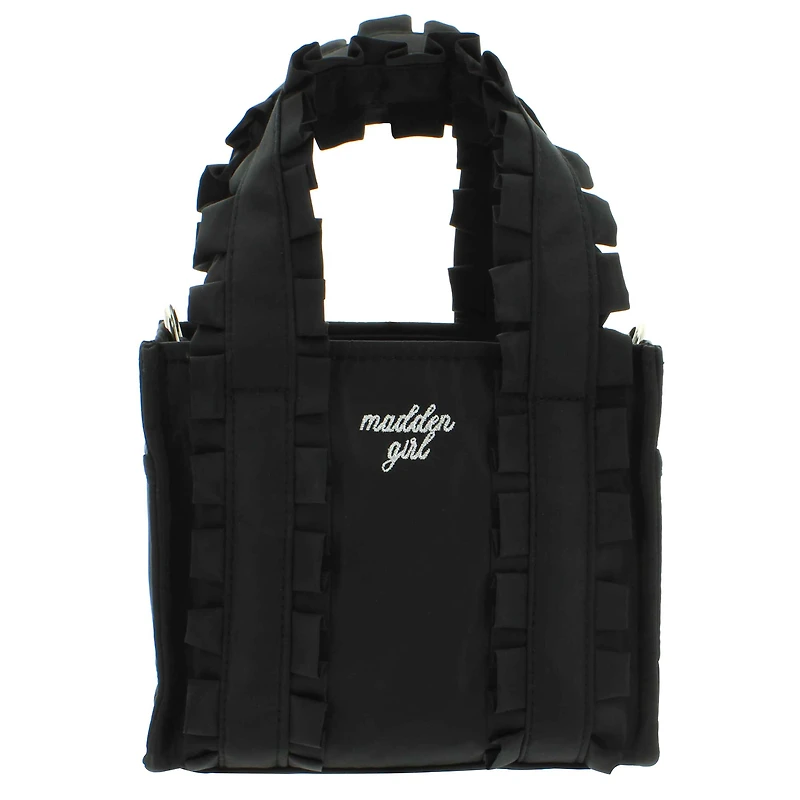 Add a chic touch to your everyday look with the Madden Girl Nylon Mini Tote. This stylish and compact tote features ruffled carry handles for a feminine flair, along with a removable, adjustable shoulder strap for versatile wear as a handbag or crossbody. Made from lightweight yet durable nylon, it's perfect for carrying your daily essentials with ease. Whether you're headed to brunch, shopping, or a night out, this mini tote combines fashion and function in one trendy package. Shop SHOE DEPT. ENCORE today.