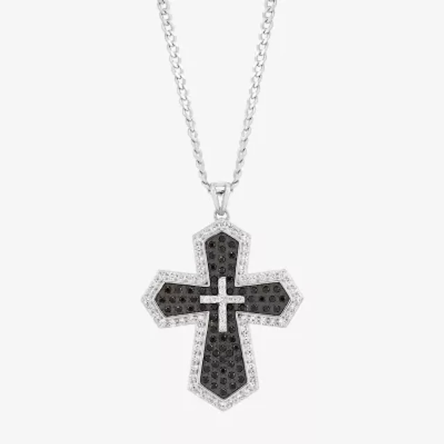Mens 1/3 CT. T.W. Natural White Diamond Sterling Silver Cross 22 Inch Pendant Necklace