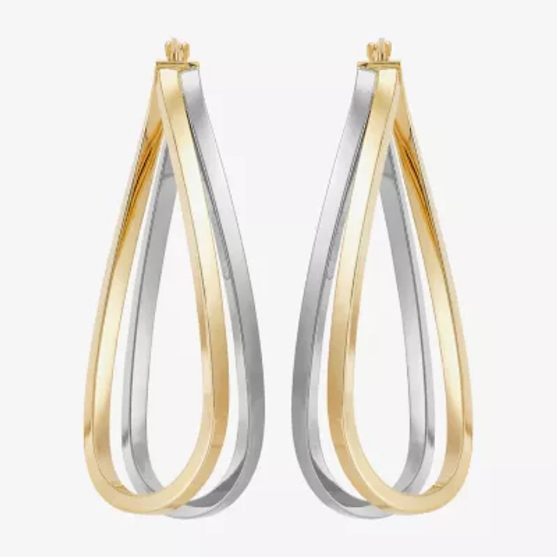 Made in Italy Womens 14K Two Tone Gold 40mm Round Hoop Earrings