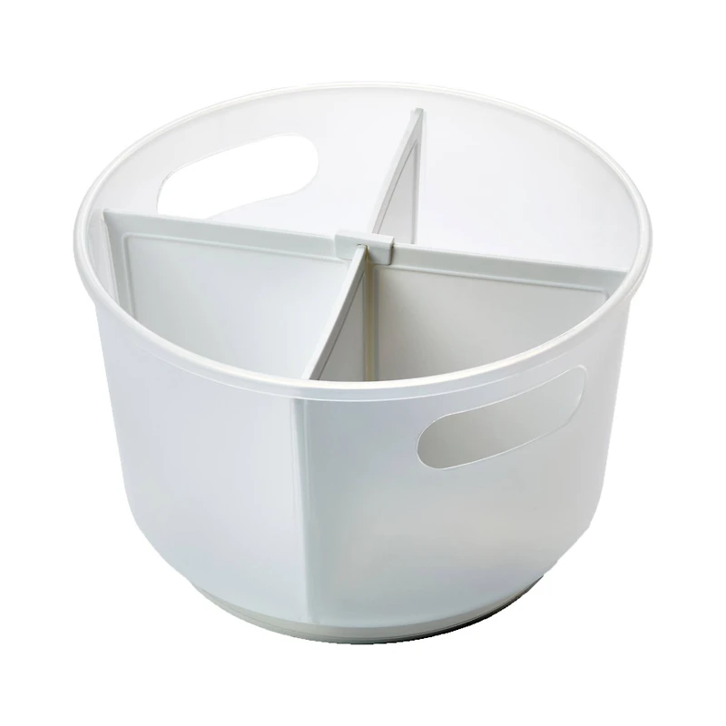 The madesmart Portable Turntable with Dividers is a fantastic addition to your overall home storage system. Use this tote to help reduce clutter and make use of hard-to-reach spaces in cabinets, closets or under your sink. The removable dividers help you separate items like yarn, fabric and other crafting supplies. It is made of durable materials for an organizing solution that lasts.Details:White11.19" x 11.19" x 7.19" (28.4cm x 28.4cm x 18.3cm)Removable binsAdjustable dividersDry-erase labeling areaPolypropylene and plastic