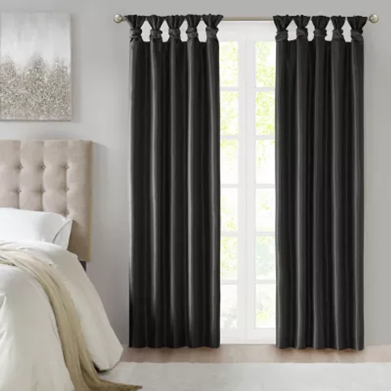 Energy efficiency meets a sophisticate style with the Madison Park Natalie Twist Tab Total Blackout Window Curtain. This faux silk curtain features our infamous DIY twist tab top finish for an elegant touch, combined with a total blackout 3 pass foamback liner to block out all outside light, noise, and intrusion for the highest level of privacy - while using thermal technology for maximum energy savings through the seasons. Assembly required. Please refer to the “How to Use” video in the image part.