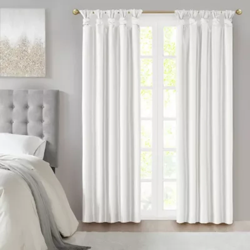 Energy efficiency meets a sophisticate style with the Madison Park Natalie Twist Tab Total Blackout Window Curtain. This faux silk curtain features our infamous DIY twist tab top finish for an elegant touch, combined with a total blackout 3 pass foamback liner to block out all outside light, noise, and intrusion for the highest level of privacy - while using thermal technology for maximum energy savings through the seasons. Assembly required. Please refer to the “How to Use” video in the image part.