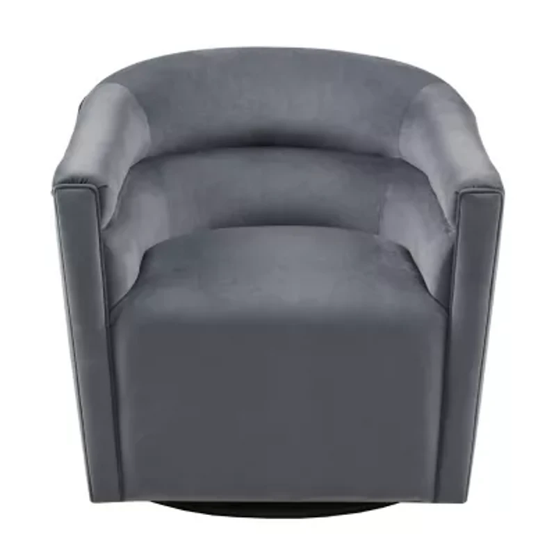 The Rileigh swivel chair by Madison park offers a luxurious blend of comfort and style to update your living room. This swivel chair features a round back and armrests with a horizontal channel that adds dimension to the transitional design. The soft, gray velvet upholstery emphasizes the elegance and lush comfort of the deep seat, while the swivel base allows the accent chair to fully rotate 360 degrees. No assembly required.