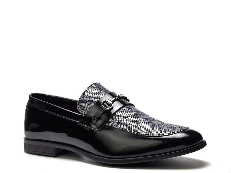 Step into the Maestro loafer from Carlos by Carlos Santana for a sleek, modern take on the traditional slip-on. This loafer’s streamlined silhouette, featuring a round moc toe and a distinctive textured vamp with a polished bit detail, effortlessly transitions from office meetings to evening plans.