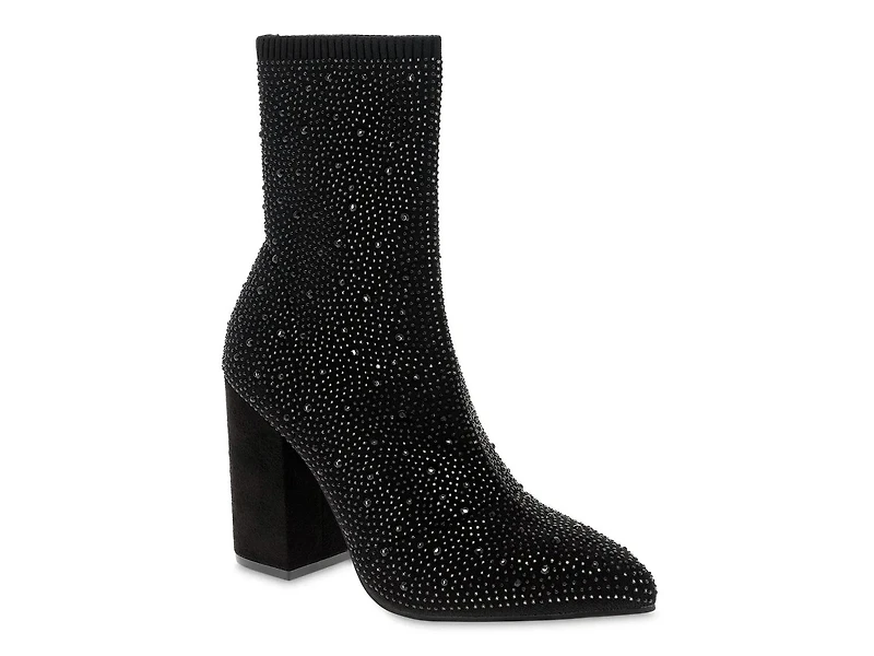 Up your personal style easily in the Magdelena bootie from Mia. The sock-like knit bootie boasts all-over rhinestone accentuation, giving off a blingy touch. Its pointed toe front brings a sleek finish.
